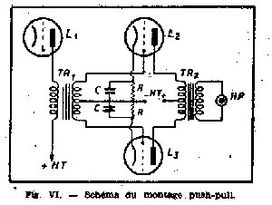 ** Sans rentrer dans les détails; cet étage consiste à faire travailler 2 lampes finales simultanement , en attaquant leur grilles par des tensions d'égale amplitude, mais opposées en phase.